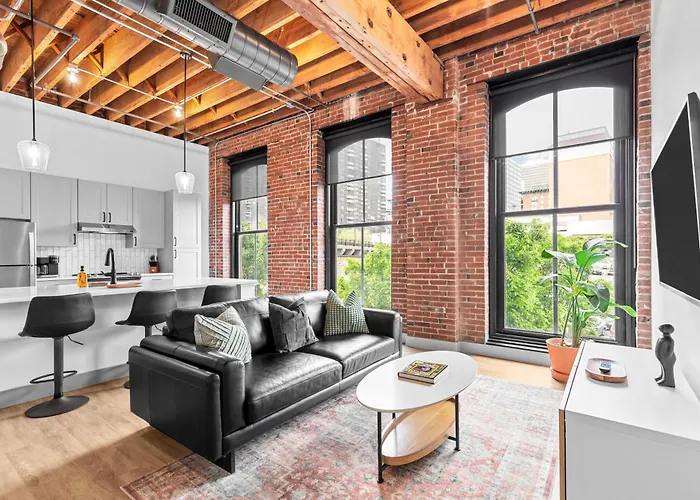 The spacious 1-bedroom Brick & Bed Riverfront Lofts, G 201 Saint Louis apartment welcomes travellers right in the centre of Saint Louis, located about 25 minutes' walk from the City Museum. The apartment is situated 2.9 km from Union train station and within a few blocks of 4th Street at Washington bus station.